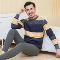 中老年人保暖内衣男加厚加绒套装老人男士圆领秋衣秋裤棉套装冬季