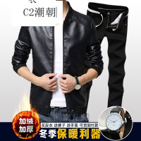送裤子送手表皮夹克男2017冬季外套男装韩版修身上衣服全名疯抢丹杰仕潮龙涧1