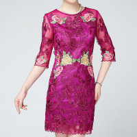 YIBUSHENG2024季新品妈妈装时尚拼接雪纺连衣裙中年女装气质显瘦裙子遮肉