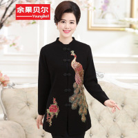 余果贝尔(YoungBell)余果贝尔((YoungBell))) 2016秋季新款中老年女装长袖印花中长款针织唐装外套