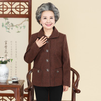 奶奶装春秋季薄外套60-70-80岁老年人毛呢长袖上衣两件套妈妈套装