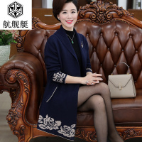奈琴尔妈妈秋外套女春新款中老年女装中长款毛呢上衣毛呢外套