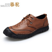 萨思雷梵骆驼男鞋休闲皮鞋2018新款春秋季英伦风手工缝线系带圆头商务正装皮鞋