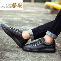 萨思雷梵骆驼男鞋春季2018新款学生板鞋黑色休闲鞋男士皮鞋低帮鞋工作鞋单鞋黑色