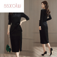 SSXOIW金丝绒连衣裙女中长款2017秋季新款韩版显瘦百搭秋冬长袖打底裙潮