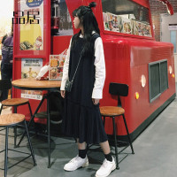 秋季新款韩版复古学院风假两件百褶连衣裙女宽松休闲裙子学生