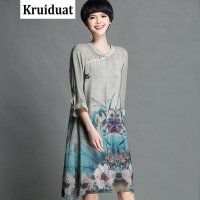 Kruidvat2017夏季新款韩版女装宽松腰七分袖印花连衣裙花色