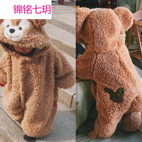 锦铭七玥达菲熊婴儿哈衣连体衣皮草加厚外套宝宝爬行服韩版童装秋款批发
