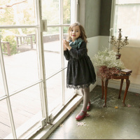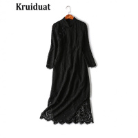 Kruidvat2017春夏新款盘扣中长款长袖蕾丝连衣裙女WGW