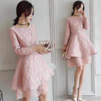 Kruidvat2017春装新款女装蕾丝圆领绣花连衣裙长袖中款修身气质包臀打底裙Z030