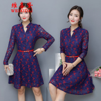 维喜黛大码女装连衣裙2017秋季新款大码胖mm修身显瘦V领长袖蕾丝连衣裙a字裙女