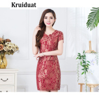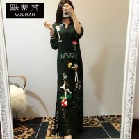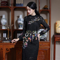Kruidvat 奈琴尔 女装连衣裙蕾丝绣花复古显瘦旗袍长款长袖长裙 WY