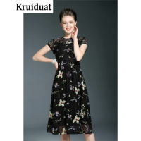 Kruidvat蕾丝绣花连衣裙女2017夏季新款中长款韩版大码时尚优雅
