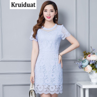 Kruidvat蕾丝绣花时尚优雅气质连衣裙2017夏季新款修身显瘦大码YX