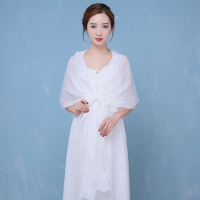 2017新款新娘婚纱披肩蕾丝纱薄款春夏白色一字肩斗篷小坎肩外套