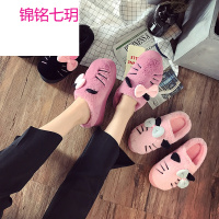 锦铭七玥17新款时尚卡通蝴蝶结棉拖鞋女 居防滑情侣拖鞋 棉拖鞋