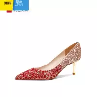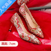 SUNTEK中式婚鞋2023年春季新款秀禾服婚纱两穿新娘鞋结婚尖头红色高跟鞋