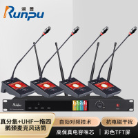 润普Runpu会议音频扩声系统桌面式双杆真分集+UHF专业无线一拖四红外对频鹅颈麦克风话筒RP-SU104FS