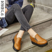 秋季新款女士单鞋内增高女鞋松糕鞋女厚底鞋拉链皮鞋韩版流行女鞋