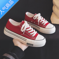 SUNTEK酒红色帆布鞋女2023年新款春夏季低帮板鞋百搭学生休闲鞋子女ins