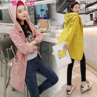 锦铭七玥春装新款色连帽中长款风衣女士工装宽松外套学生上衣124