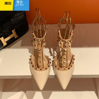 聚范铆钉高跟鞋女2024年夏季新款尖头细跟白色柳丁不累脚网红凉鞋单鞋