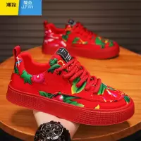 聚范帆布男鞋夏季透气小众设计休闲板鞋厚底东北红色大花运动布鞋