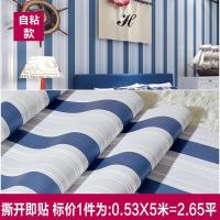 蓝色竖条纹墙贴装饰贴纸客厅简约蓝白背景墙纸-68160-自粘款5米