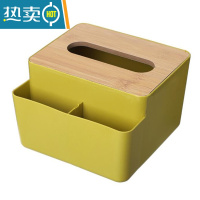 敬平纸巾盒抽纸盒家用纸抽盒客厅遥控器多功能创意餐巾纸盒茶几收纳盒 北欧黄(3格)竹木盖