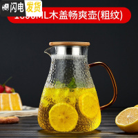 三维工匠冷水壶玻璃水壶凉水壶可高温家用茶壶耐热防爆凉白开水杯扎壶套装 1600木盖畅爽壶(粗纹)