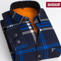 UYUK 秋冬季男士保暖衬衫加绒加厚长袖修身中年格子衬衣上衣男装打底衫