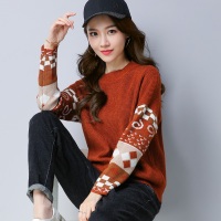 冬季焦糖色针织上衣短款毛衣春秋2017新款套头女宽松韩版加厚百搭