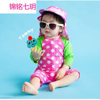 锦铭七玥韩国儿童泳衣长袖连体保暖 女童宝宝婴儿可爱防晒冲浪服二件套装