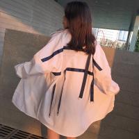 夏装原宿竖条纹长袖衬衫200斤胖mm加肥加大码宽松中长款衬衣外套
