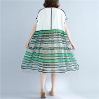 胖mm夏装新款原创大码宽松棉麻连衣裙女休闲大口袋条纹中长文艺裙