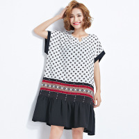 胖mm夏装2017新款文艺大码女装雪纺拼接宽松藏肉中长款大摆连衣裙