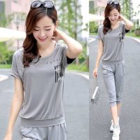 运动套装女夏装2018新款胖妹妹宽松大码休闲运动服胖mm短袖两件套
