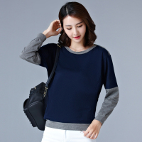加肥加大码女装简约T恤2017胖MM休闲撞色200斤显瘦长袖打底衫衣服