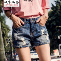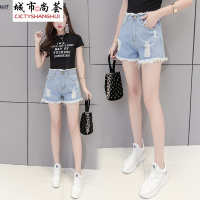 破洞牛仔短裤女薄宽松休闲阔腿短裤显瘦a字裤大码胖mm短裤