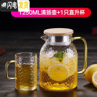 三维工匠大容量可高温凉水壶锤纹玻璃冷水壶家用玻璃水壶果汁壶套装 1250清扬壶+1只直身杯