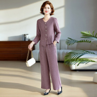 中老年春秋新款衣服时尚简约妈妈装套装春款V领显高显瘦中年女装