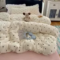 高克重提花加厚毛毛边牛奶绒四件套珊瑚绒被套床单床笠冬季保暖