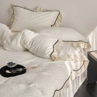手工打褶花边~立体花绒法式复古牛奶绒四件套 韩版珊瑚绒床品冬