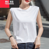 YIBUSHENG80支丝光棉短袖t恤女外穿宽松凉爽季无袖背心打底白色上衣