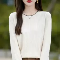 春秋冬新款安迪绒长袖针织衫女士圆领套头上衣坑条打底衫毛衣