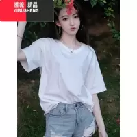 YIBUSHENG圆领大白色体恤短袖t恤内搭女士半袖季时尚宽松上衣潮韩版