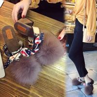 毛毛拖鞋秋冬季2017新款韩版粗跟女鞋子外穿高跟无后跟包头半拖