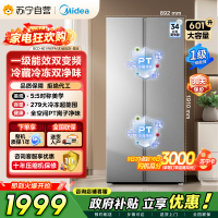 美的(Midea)606L大容量对开门电冰箱双开门双变频一级能效超薄BCD-606WKPM(E) 炭灰风冷无霜净味国补