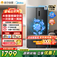 [自营]美的冰箱炭灰浮光对开门冰箱 570+升1级变频风冷自动除霜电脑控温家庭大容量