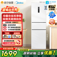 美的(Midea)219升小型冰箱MR-230TE极地白 三门三温租房家用客厅三开门大容量中门软冷冻节能省电